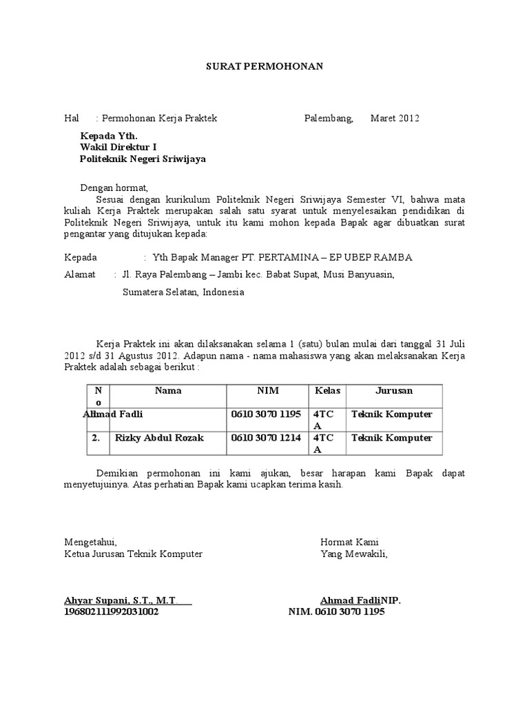 CONTOH Surat PKL from imgv2-2-f.scribdassets.com Surat balasan ini juga dapat digunakan seperti halnya surat pada umumnya, hanya saja surat balasan ini ditulis setelah sebuah organisasi atau instansi mendapatkan sebuah surat. Untuk itu langsung saja surat balasan pkl dibawah ini selengkapnya untuk format surat balasan pkl akhmad, s.t ( direktur). So please help us by uploading 1 new. Fotocopy khs / transkrip nilai (1 lembar); Contoh cara membuat surat permohonan prakerin smk. Laporan praktik kerja lapangan pkl pada bidang marketing. Sekian dari kami tentang contoh surat balasan pkl yang bisa kami. Surat balasan penolakan pkl 2015 mahasiswa upn.